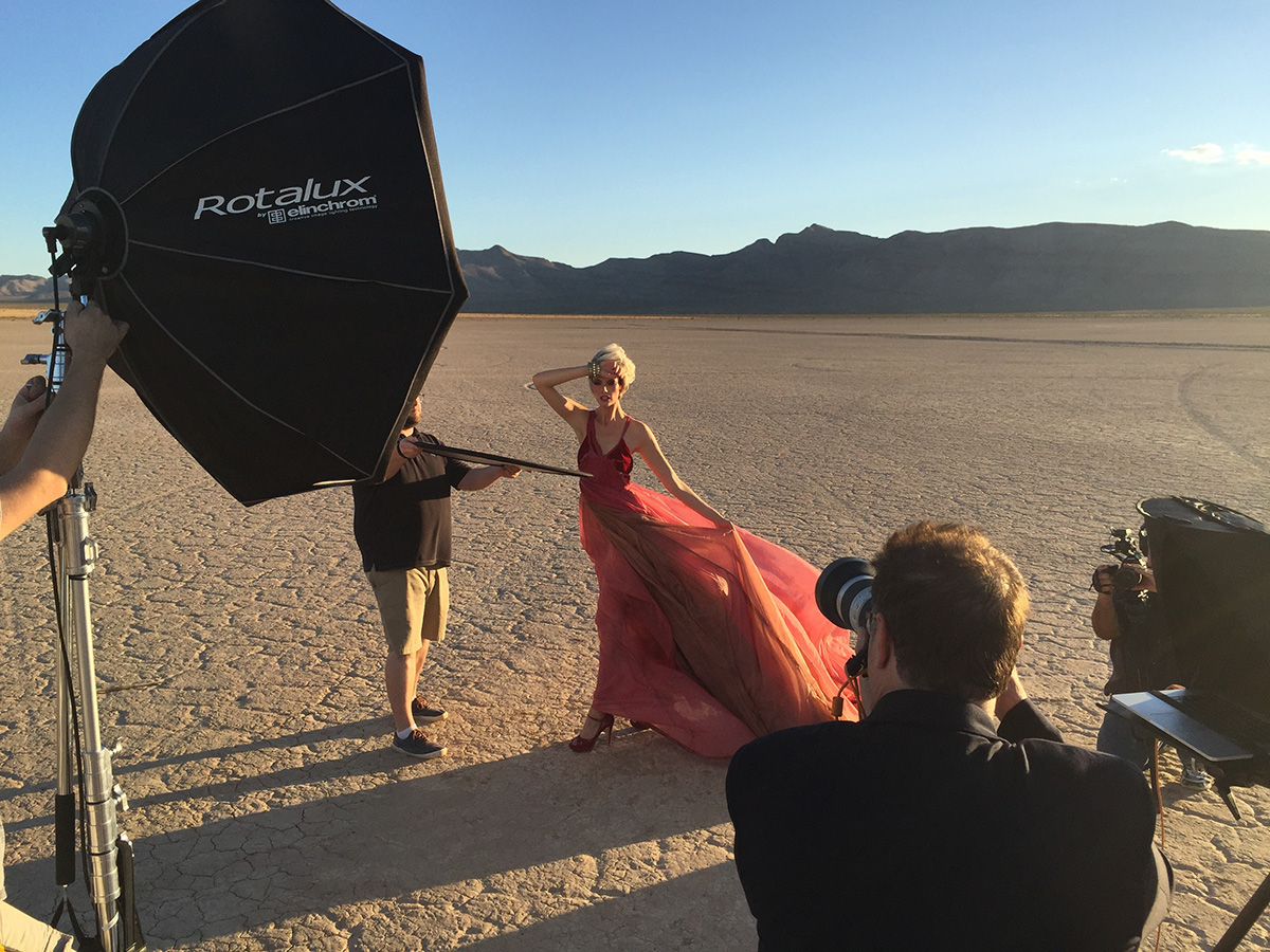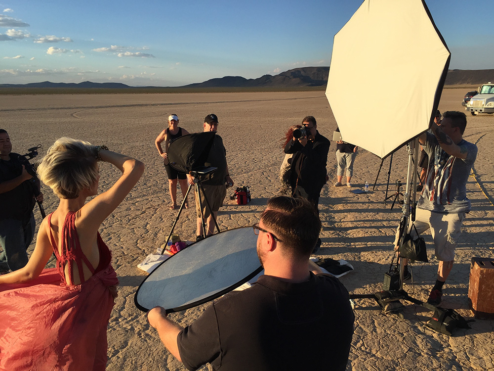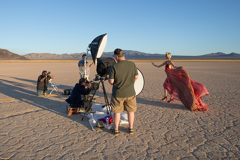 If you’ve been following me on Facebook, Twitter or Instagram, you’ve probably seen me posting some shots from a class I’ve been working on about my location lighting set-up. I had four different location shoots planned for the class (we wrapped up taping last week), but the day before Photoshop World we did the first shoot out on a dry lake bed just outside Vegas.